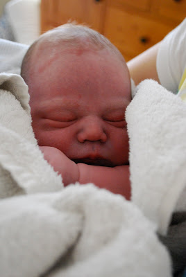 We eventually declined the hospital transport from the EMTs as I had stablized and the bleeding was under control. I was able to nurse you, our new baby boy and hold you while I ate some food. But I was pretty weak and worn out and it was hard to position you. Then the midwives took you to look you over and get your measurements. Such a big boy - all of 10 lbs, 10 oz and 22 3/4 inches long! What a big boy! The biggest baby yet our midwives have delivered (it used to be Abbey - but you beat her...we didn't need to break a record you know?!) Your sisters all got to look at you and hold you after that while I tried to rest.